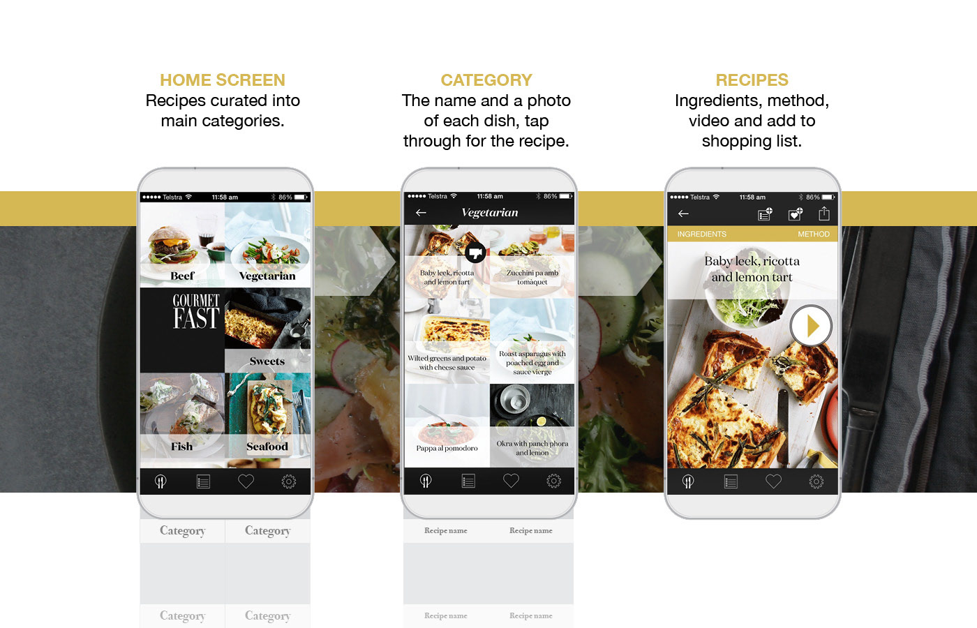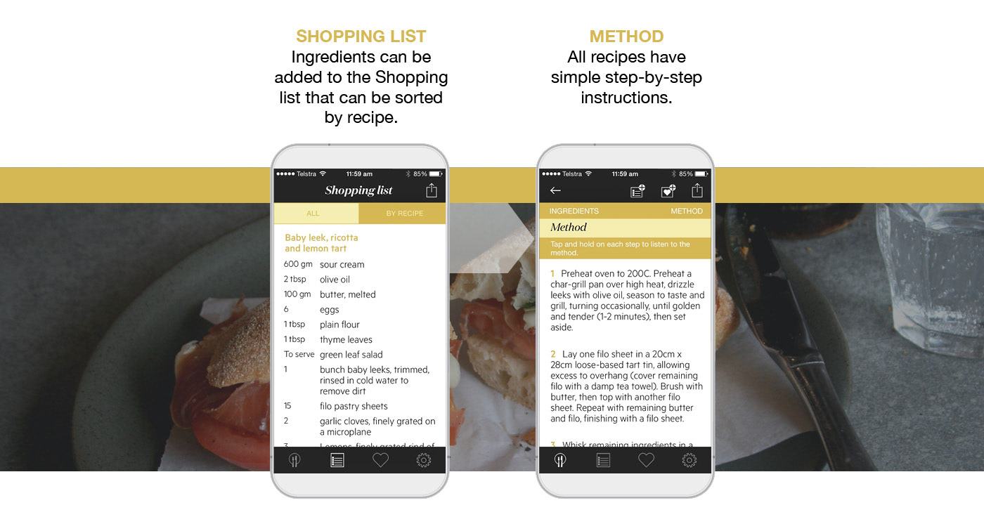 Gourmet Fast recipe app made for Gourmet Traveller Magazine.